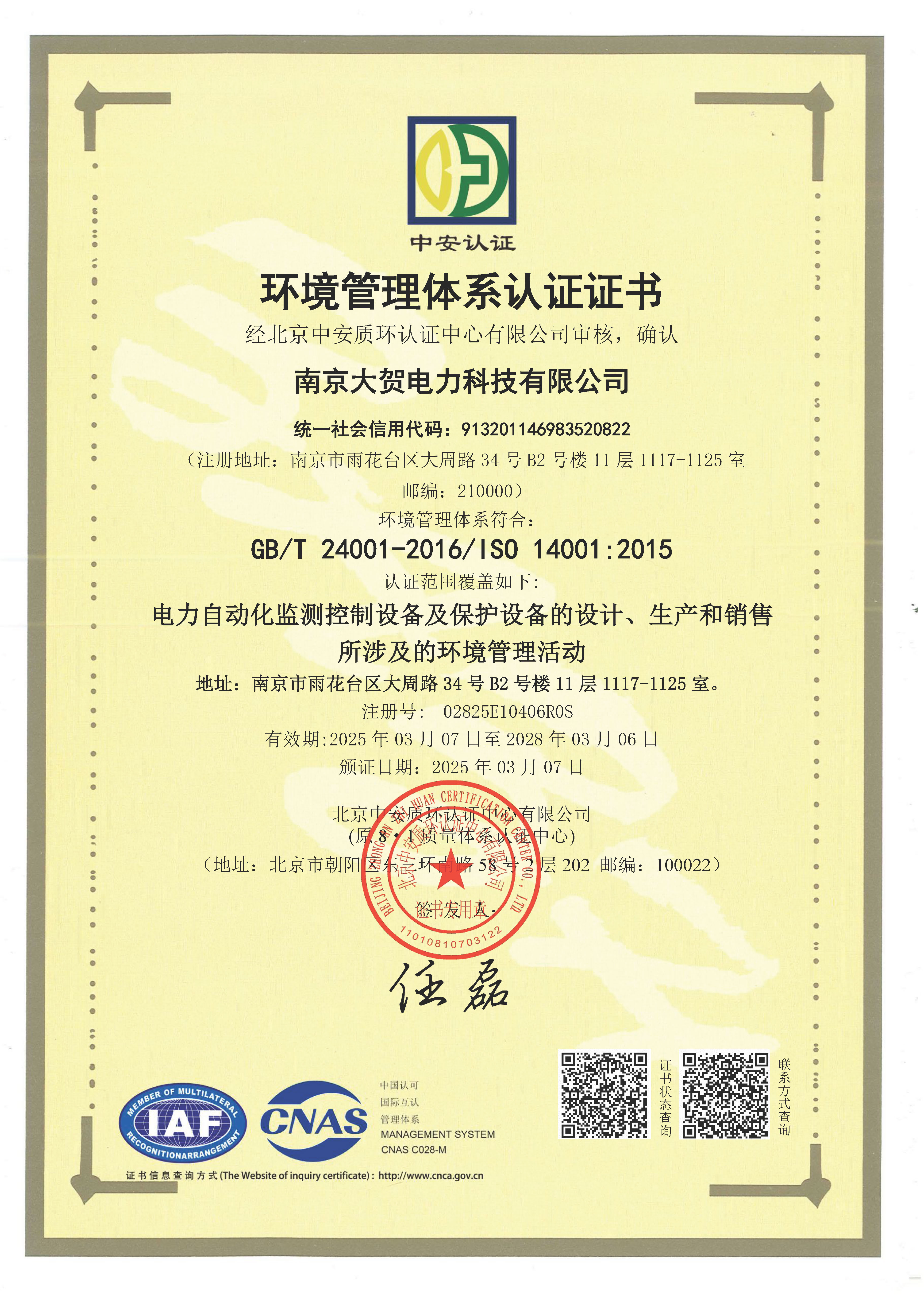 环境管理体系认证证