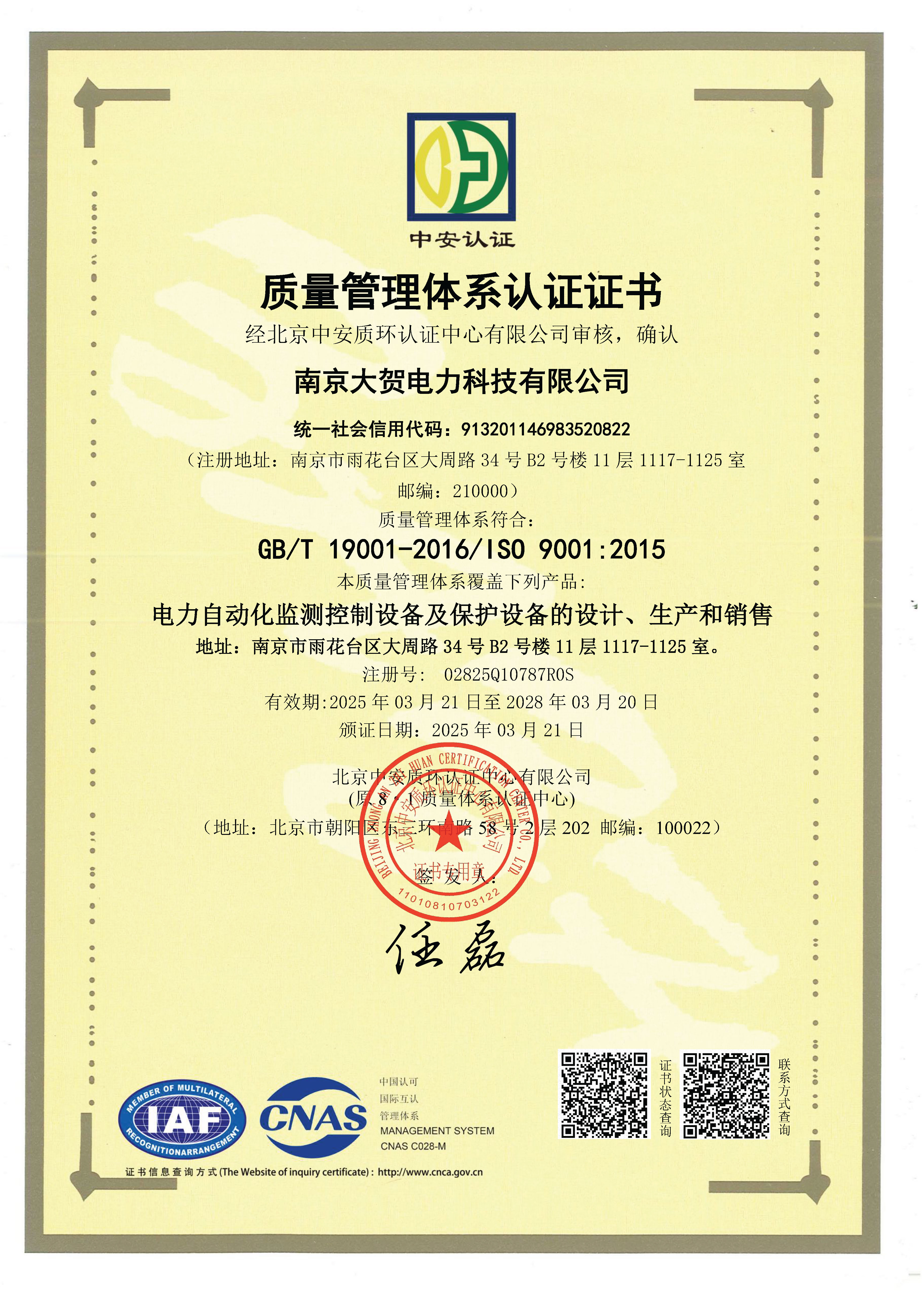 质量管理体系认证证